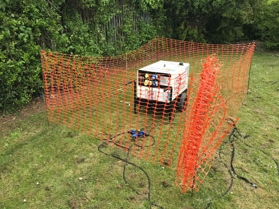 We provide a suitable and checked fire extinguisher as well as perimeter fencing to cordon off the generator from users.