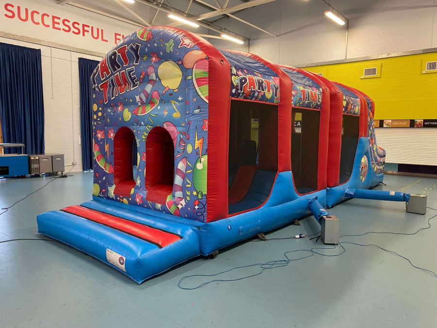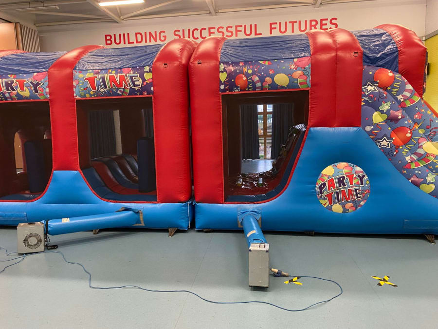 It's so big, it actually comes in two pieces and requires two separate fans! It joins together seamlessly once erected to create a whopping 40 foot long adult capable assault course.