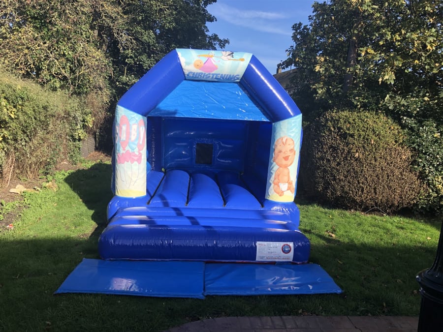 Blue Christening Themed Bouncy Castle available to hire in Bexleyheath, Dartford, Welling, Sidcup, Blackfen, Crayford, Falconwood and all surrounding areas!