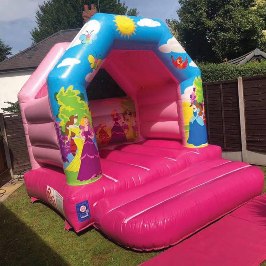 This is a beautiful glossy bouncy castle that really has a very sickly sweet pink princess theme. We have other pink princess bouncy castles, but this one has been sourced deliberately as part of our commitment to providing a wide choice of sizes; It's 10 foot wide, so slightly narrower than most standard bouncy castles, but it's also only 12 foot long, making it perfect for smaller gardens or venues where you need to save some space.