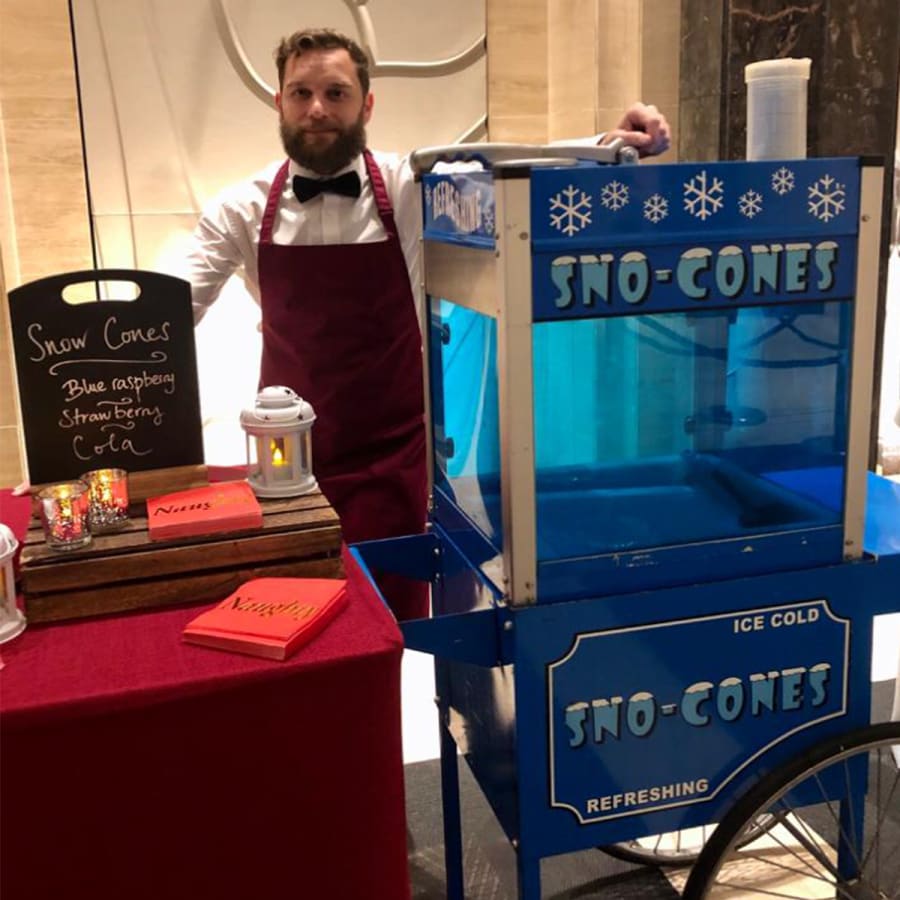 This is a premium, fully commercial snow cone machine ready to hire for your party! Set-up by trained and food hygiene certied operators! This comes staffed and for the price of hire you receive two hours with unlimited servings!