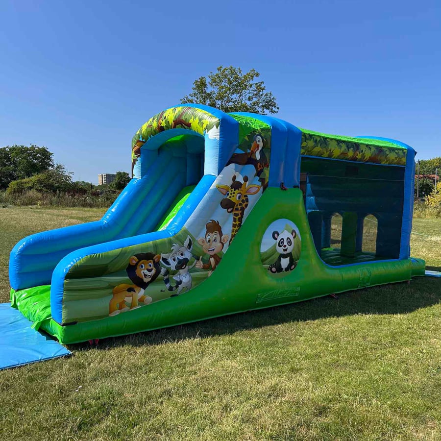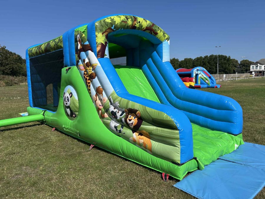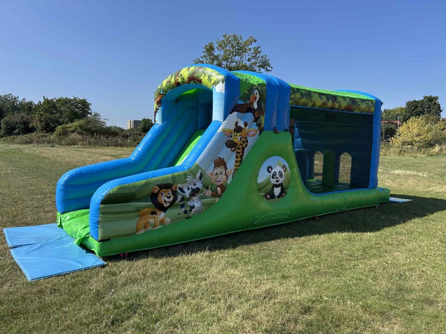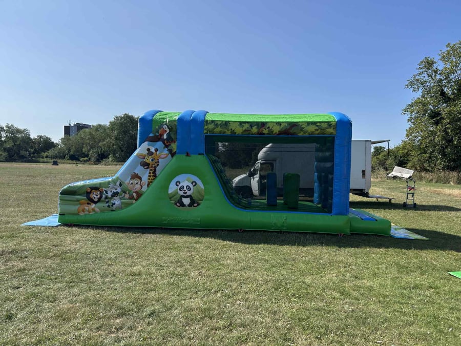 This is our brand new, even bigger Jungle themed fun run (sometimes referred to as an assualt course or obstable course). It's brand new and looks the part! Plenty to do and a really competative price! The artwork is all over and we're also able to provide plenty of other jungle themed inflatables, ranging from bouncy castles, ball pools and even soft play!