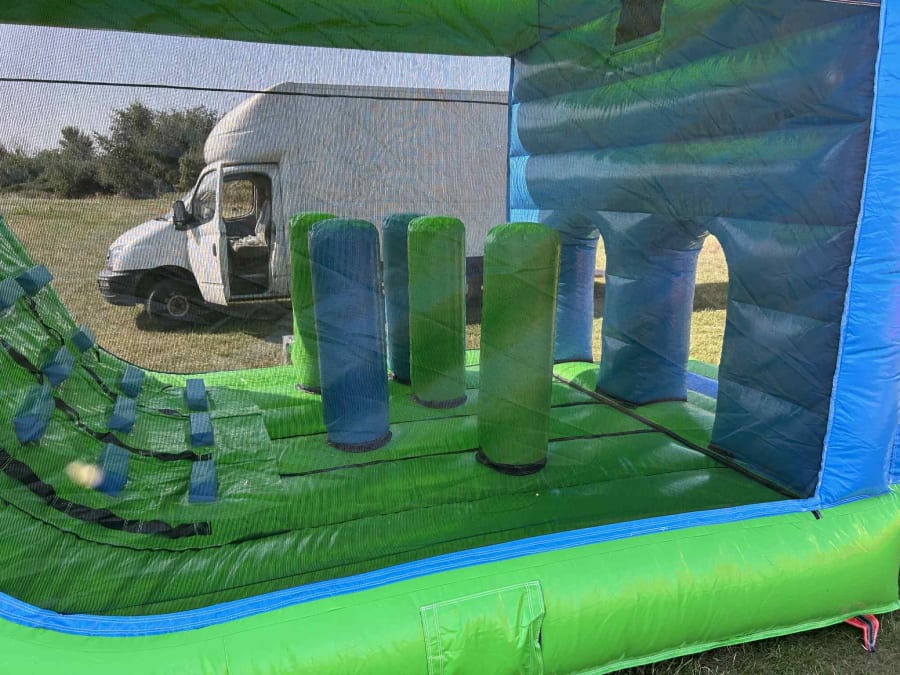 There's a lot to do in this fun run, it really packs a punch with the cool entry "port holes", bashers with bouncy bed and then cool climbing wall and exciting 7 foot slide to whoosh down! We offer this fun run to hire on it's own, but we also do a school/fete package too!