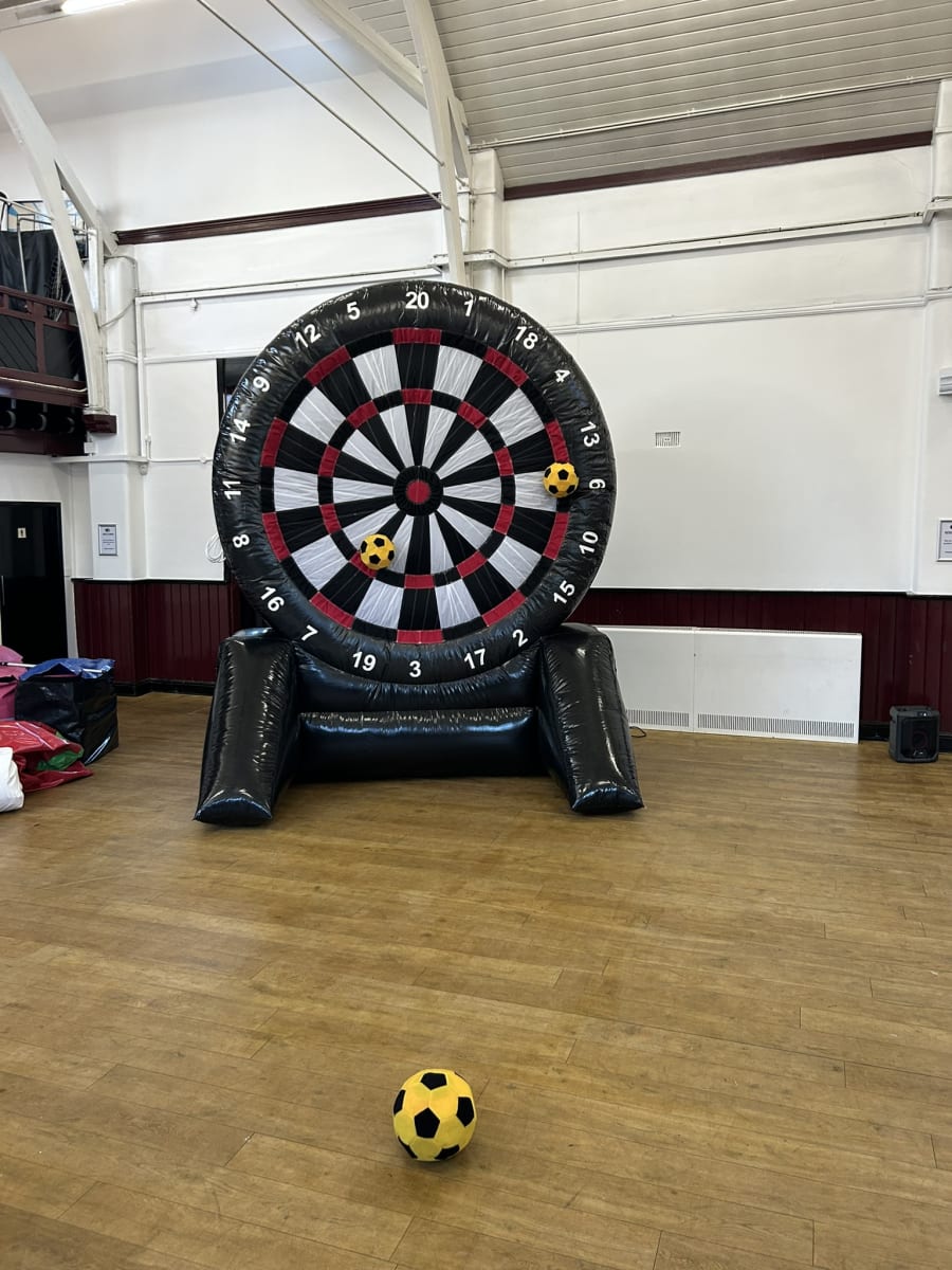 This isn't to be confused with our regular inflatable velcro dartboard, this is a full sized kick and stick - foot darts board including full sized velcro footballs.